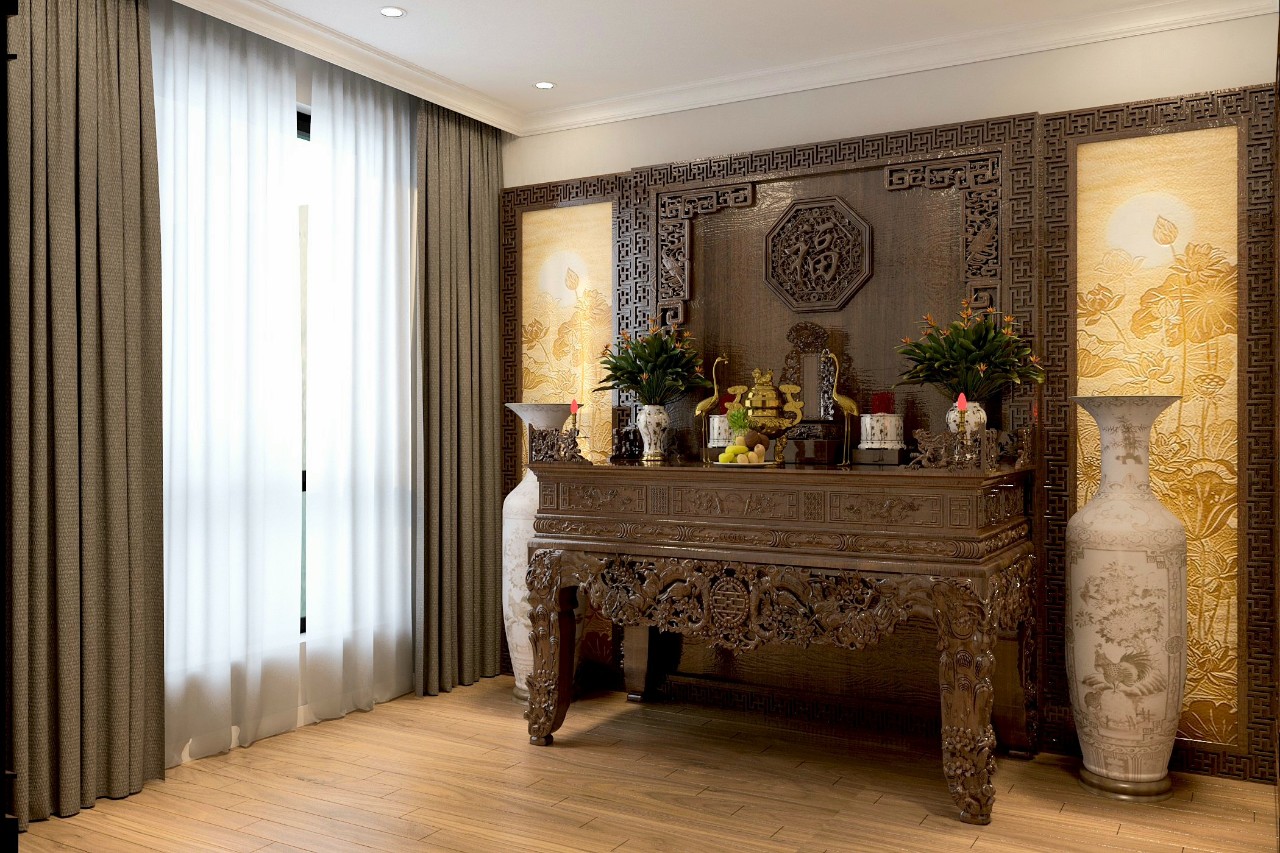 Phong tục thờ cúng của người Việt Nam ta bắt đầu từ thời rất lâu với ý nghĩa biết ơn và tưởng nhớ những người thân đã sinh thành. Việc thờ cúng còn thể hiện sự cầu mong của mình, mong được phù hộ có một cuộc sống tốt đẹp hơn. Vậy nên bất kỳ gia đình nào cũng đều có phòng thờ, đặc biệt khi thiết kế nội thất biệt thự phòng thờ càng được chú trọng hơn. Do đó thiết kế phòng thờ có tầm rất quan trọng, bởi nó không chỉ liên quan đến tín ngưỡng mà còn gây ảnh hưởng lớn đến tài vận theo phong thủy.