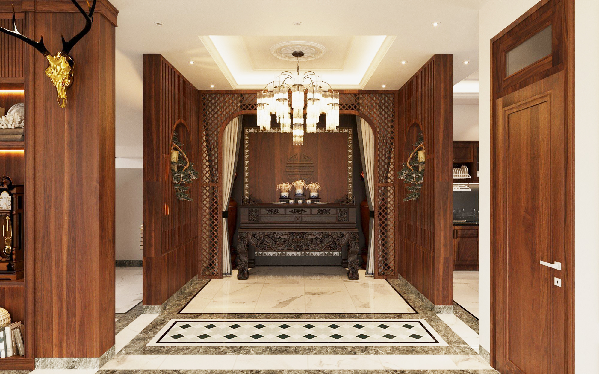 Bàn thờ gỗ : Là sản phẩm thiết yếu phải có trong không gian phòng thờ nhà bạn. Đây chính là nơi để ta bầy những lễ vật cúng bái các ngài như bát hương, cây nến, hoa quả