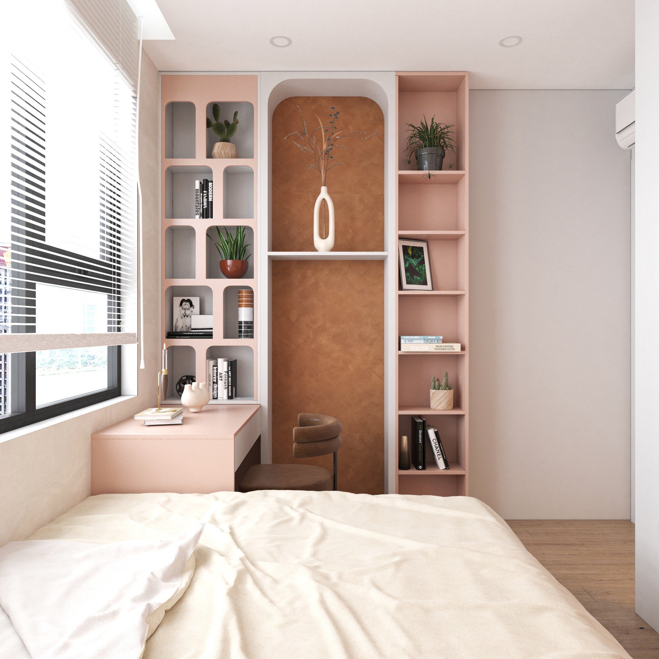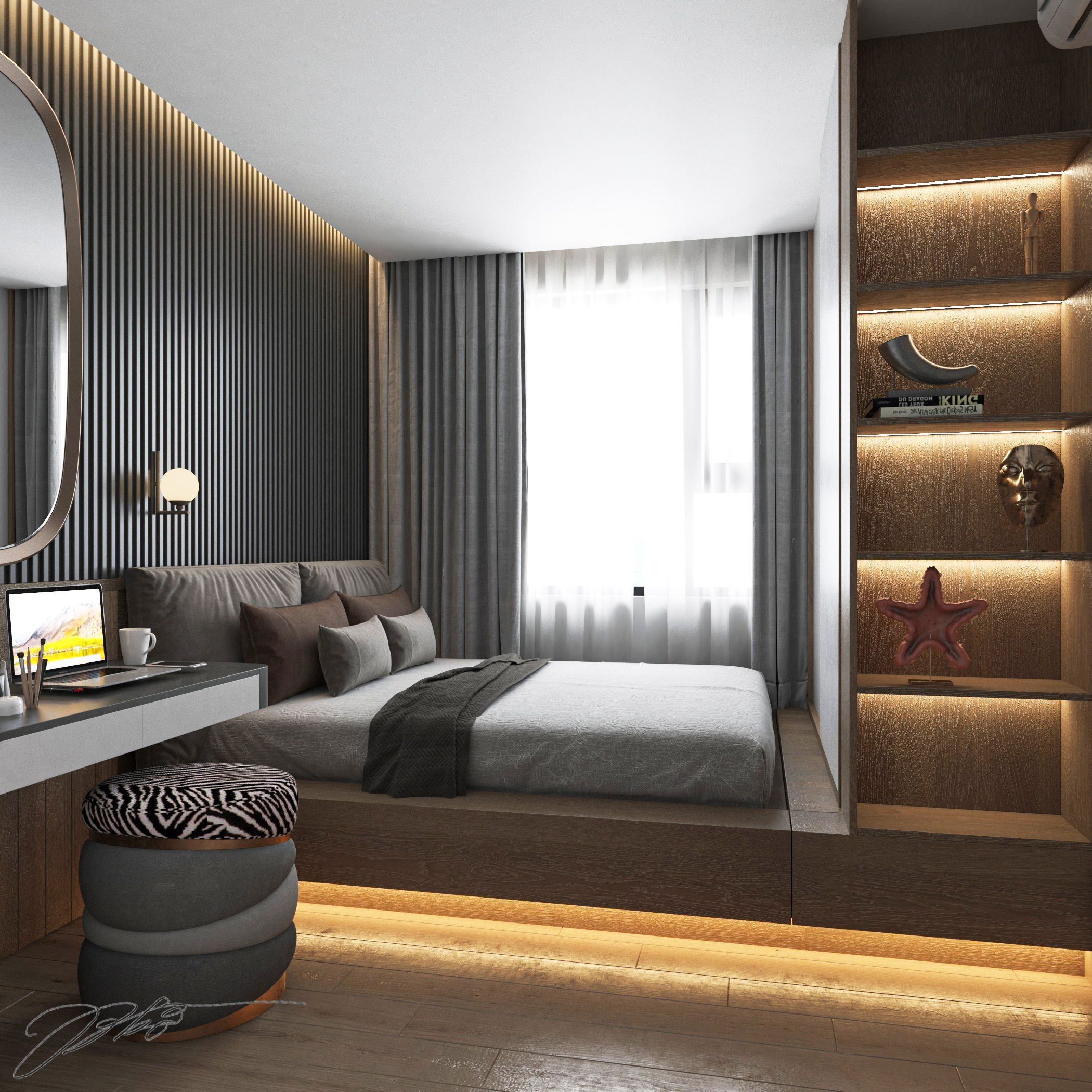 Hai phòng ngủ nhỏ được thiết kế trẻ trung, nội thất tối giản, gam màu trung tính pha màu đen cá tính như một cách thể hiện phong cách sống nhạy bén. Chắc hẳn không gian này không chỉ đem đến những trải nghiệm sống thú vị mà còn thoả mãn ước muốn thể hiện cá tính bản thân của mỗi thành viên
