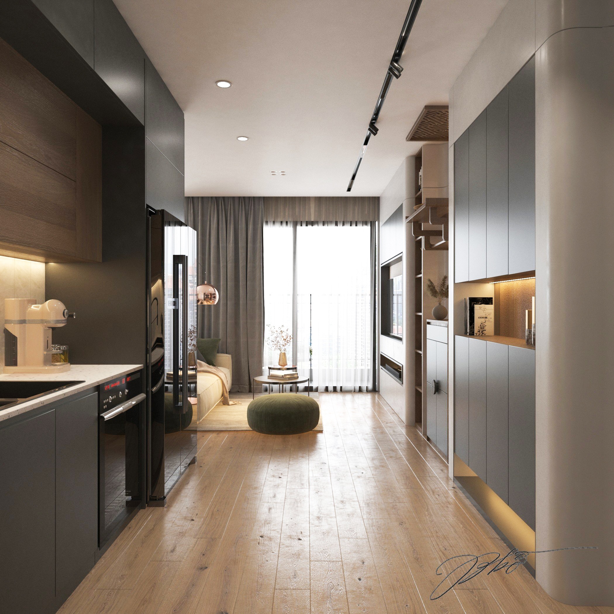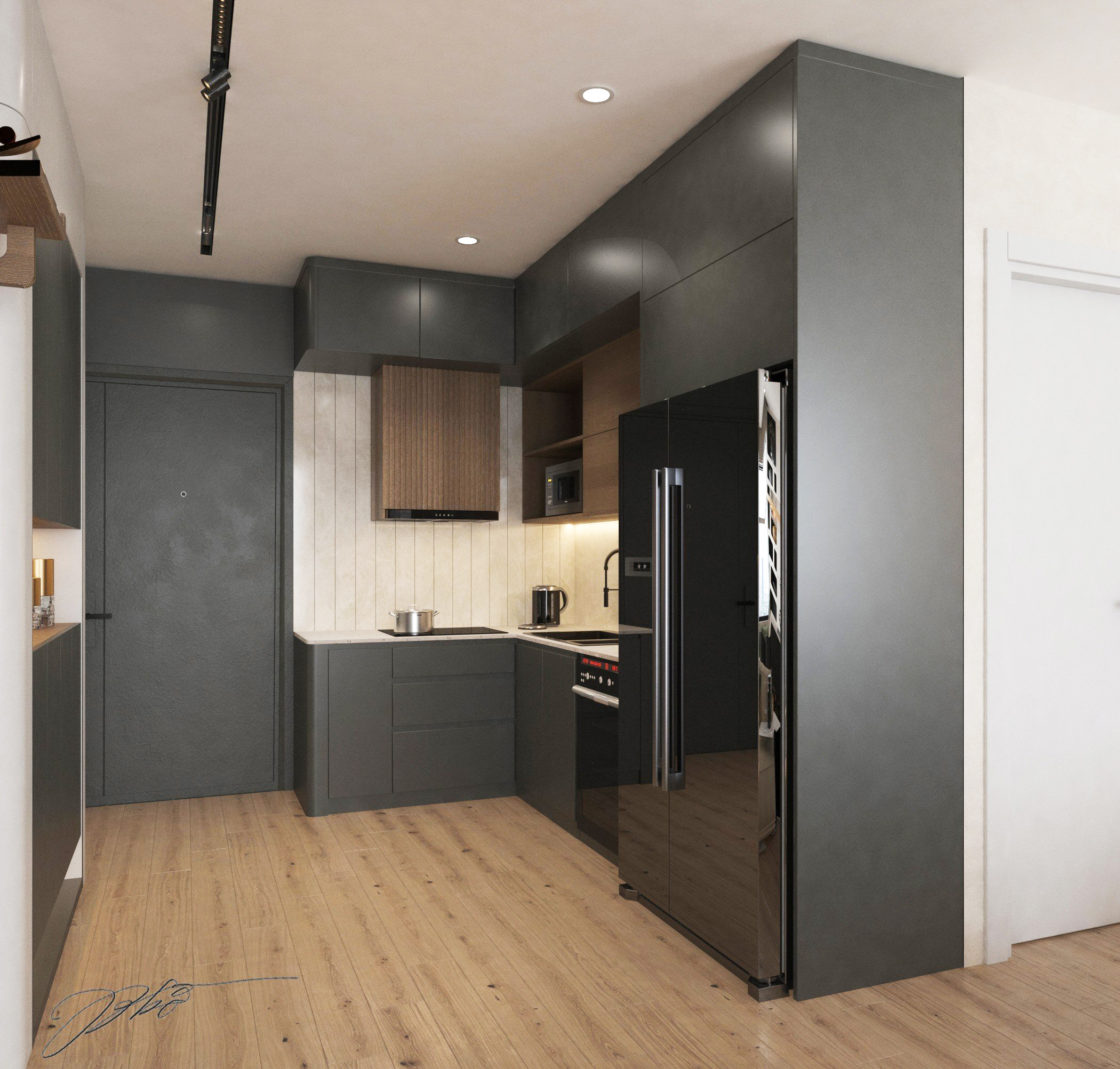 Nếu như không gian bên ngoài được lựa chọn chính là nội thất gỗ , thì phần tủ bếp kiến trúc sư chọn riêng một gam màu và chất liệu khác, hiện đại và trẻ trung hơn. Tủ bếp dưới gam màu đen dễ lau chùi, tủ bếp trên gam màu trắng sẽ giúp không gian có chiều sâu, cao và thoáng đãng hơn rất nhiều