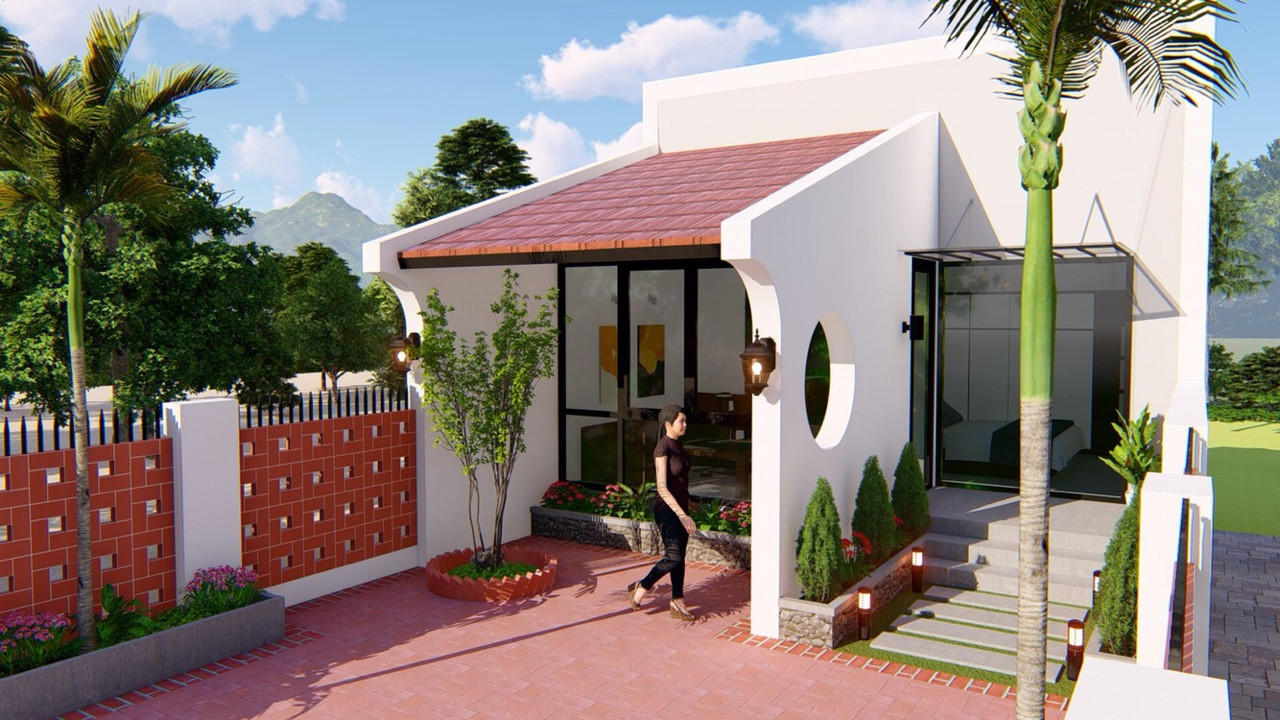 Homestay xinh xắn có khoảng sân trước khá rộng. Bạn có thể chọn thiết kế này làm homestay cho riêng mình có không gian riêng tư thoải mái nghỉ dưỡng cuối tuần.