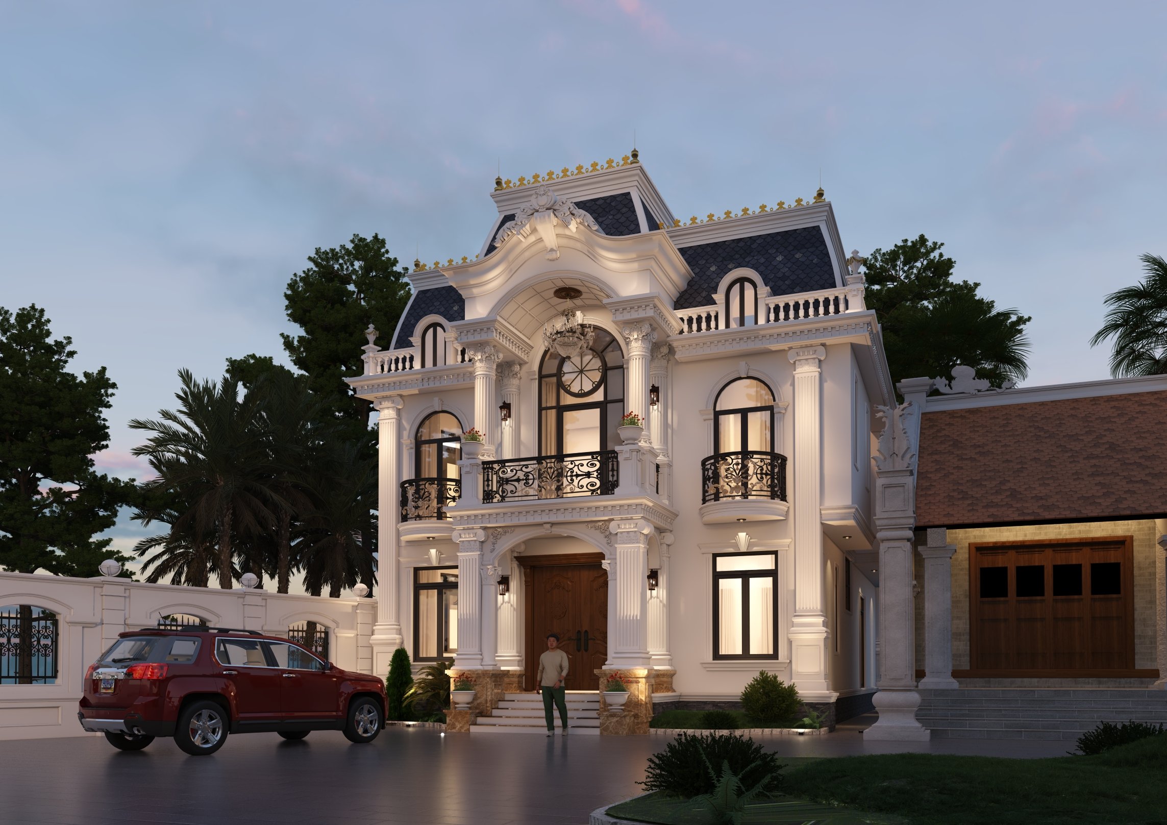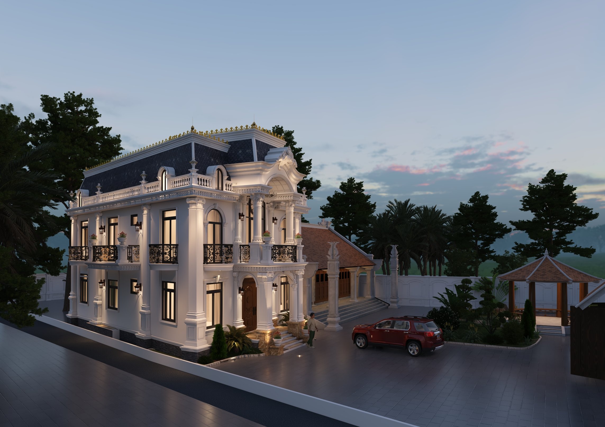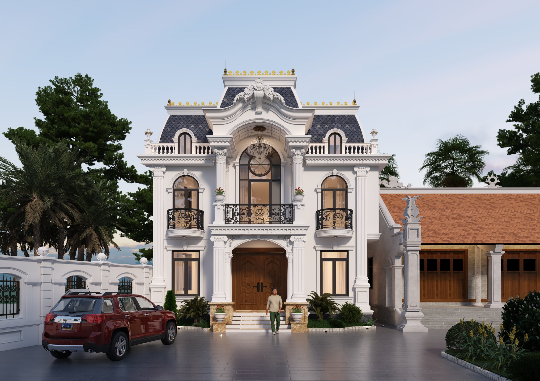 Mẫu nhà biệt thự tân cổ điển mặt tiền 9m là phương án thiết kế của Aroom dành cho gia đình nhà anh Đỉnh ở Sóc Sơn. Công trình biệt thự 2 tầng được thể hiện sự tinh tế, sang trọng và đẳng cấp của chủ đầu tư. Phong cách tân cổ điện với những họa tiết trang trí tinh xảo, vật liệu và màu sắc vô cùng cao cấp. Dưới đây là hình ảnh rõ nét của căn biệt thự tân cổ điển với mặt tiền 9m này: