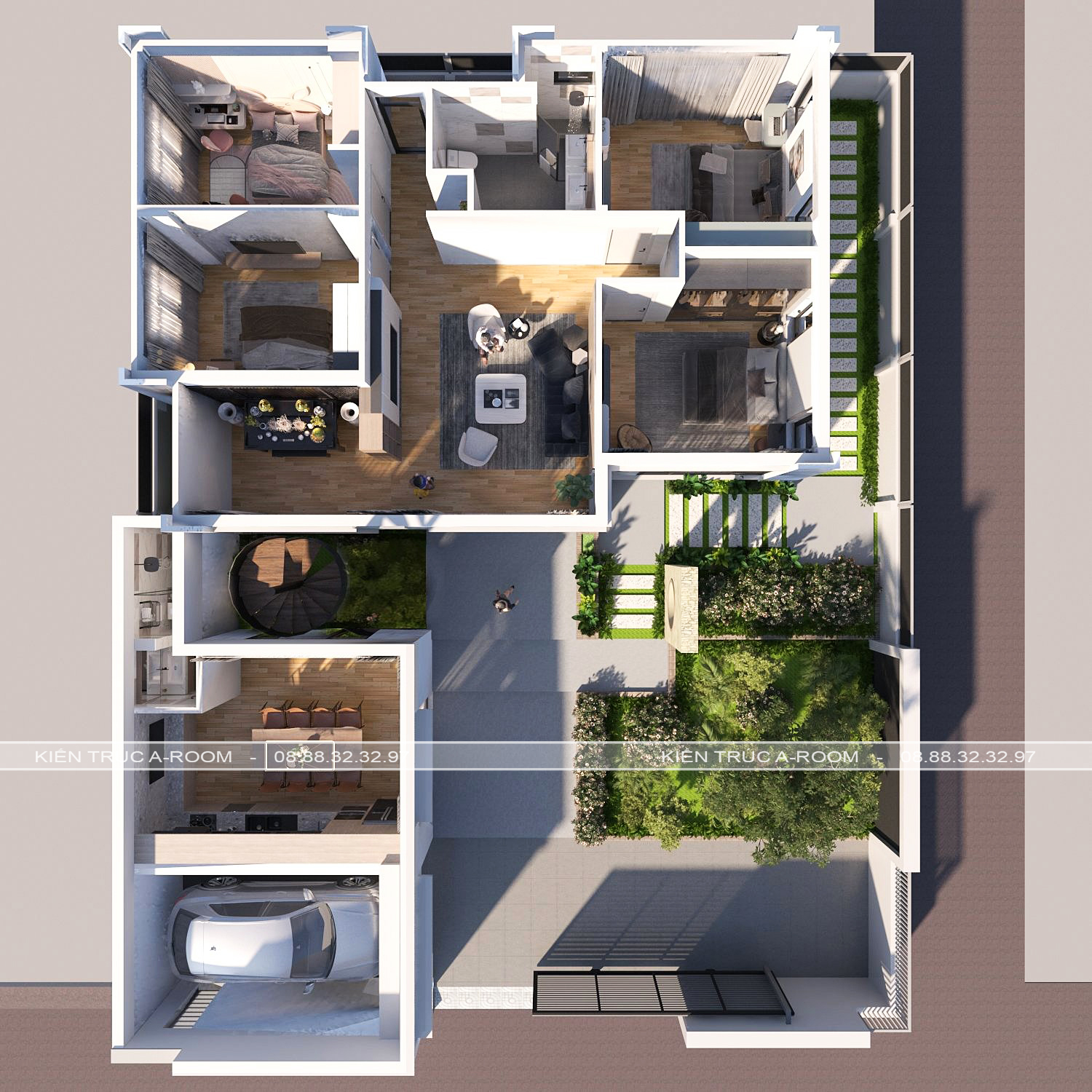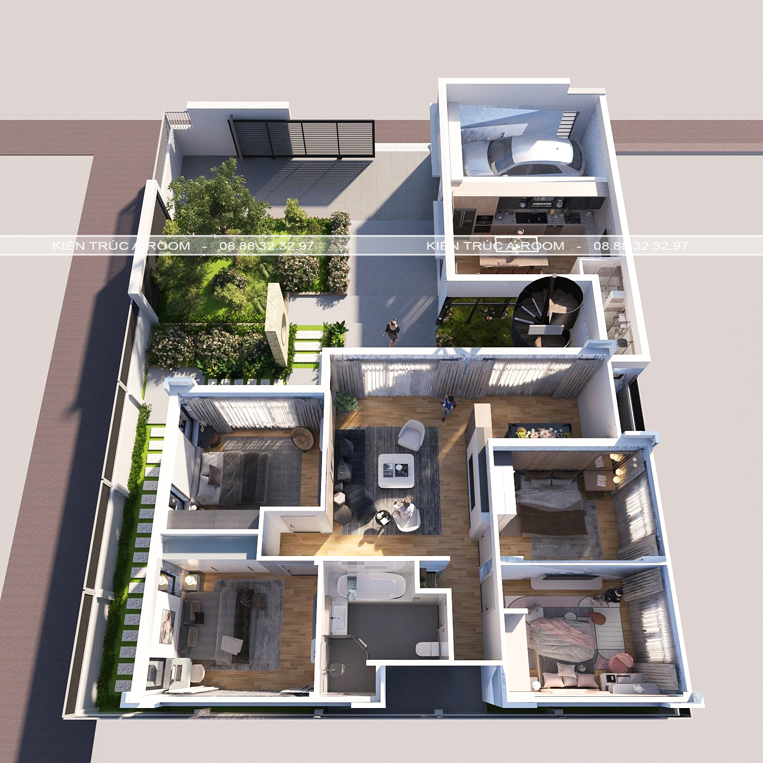 với sắc trắng tinh tế không chỉ giúp tạo nên sự bắt mắt mà còn giúp làm nổi bật các chi tiết trang trí hay màu sắc để tạo điểm nhấn nổi bật cho ngôi nhà. Phần mái của ngôi nhà được thiết kế với tông màu ghi vừa giúp tô điểm thêm nét hiện đại cho ngôi nhà, vừa giải quyết được vấn đề chống nóng và thoát nước được nhanh chóng hơn vào những ngày trời mưa.