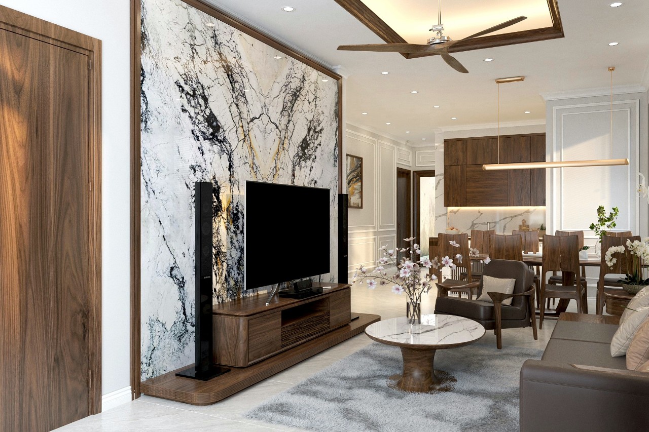 Bước vào đầu tiên bạn sẽ thấy phòng khách bao giờ cũng mang đến sự đơn giản và tiện nghi. Điều này biểu hiện rõ rệt ở các vật dụng, thiết bị điện tử, điện lạnh như: dàn âm li, loa, tivi, quạt điều hòa,…Bên cạnh đó, các bức tranh treo tường cũng là những thiết bị tuyệt vời mang đậm phong cách đó.