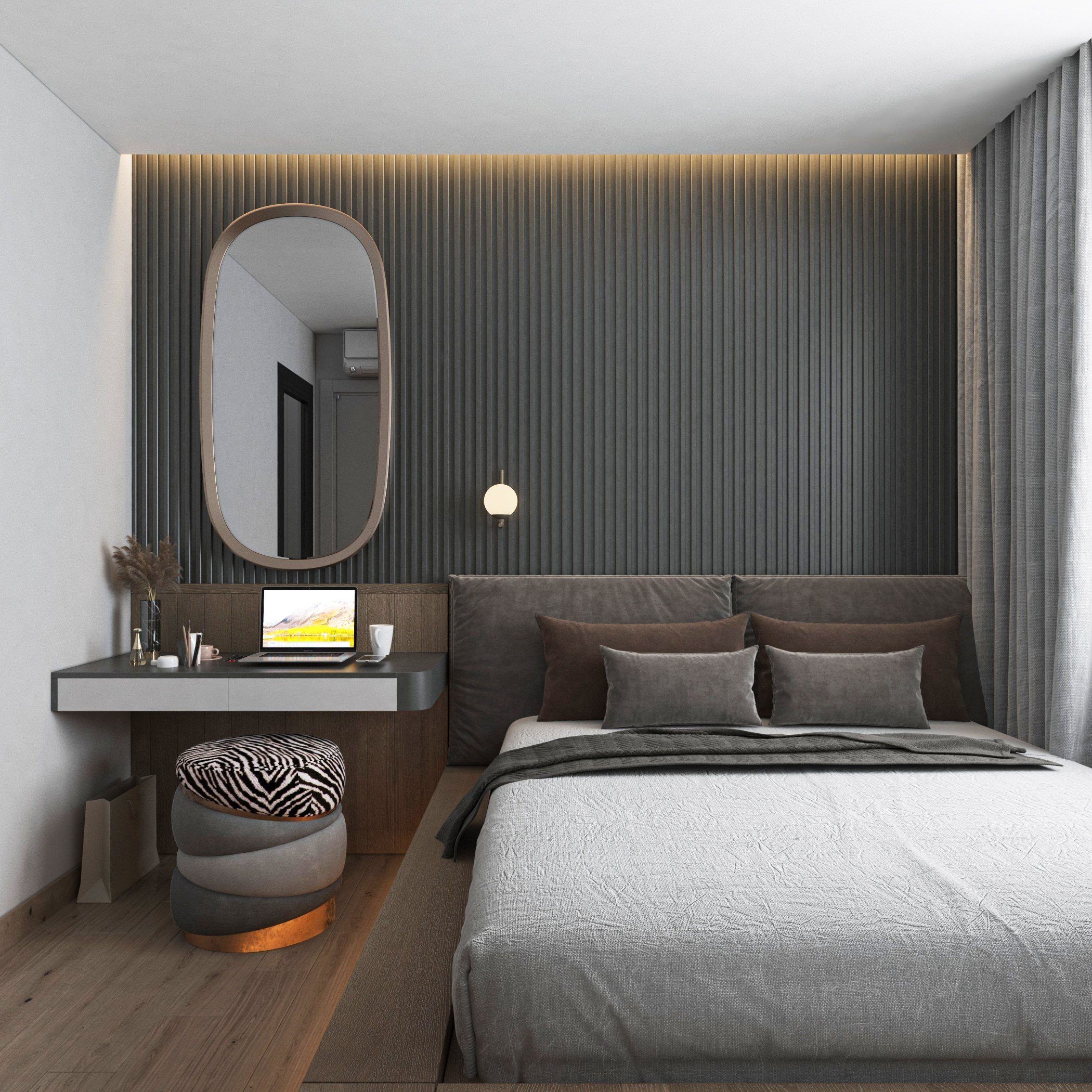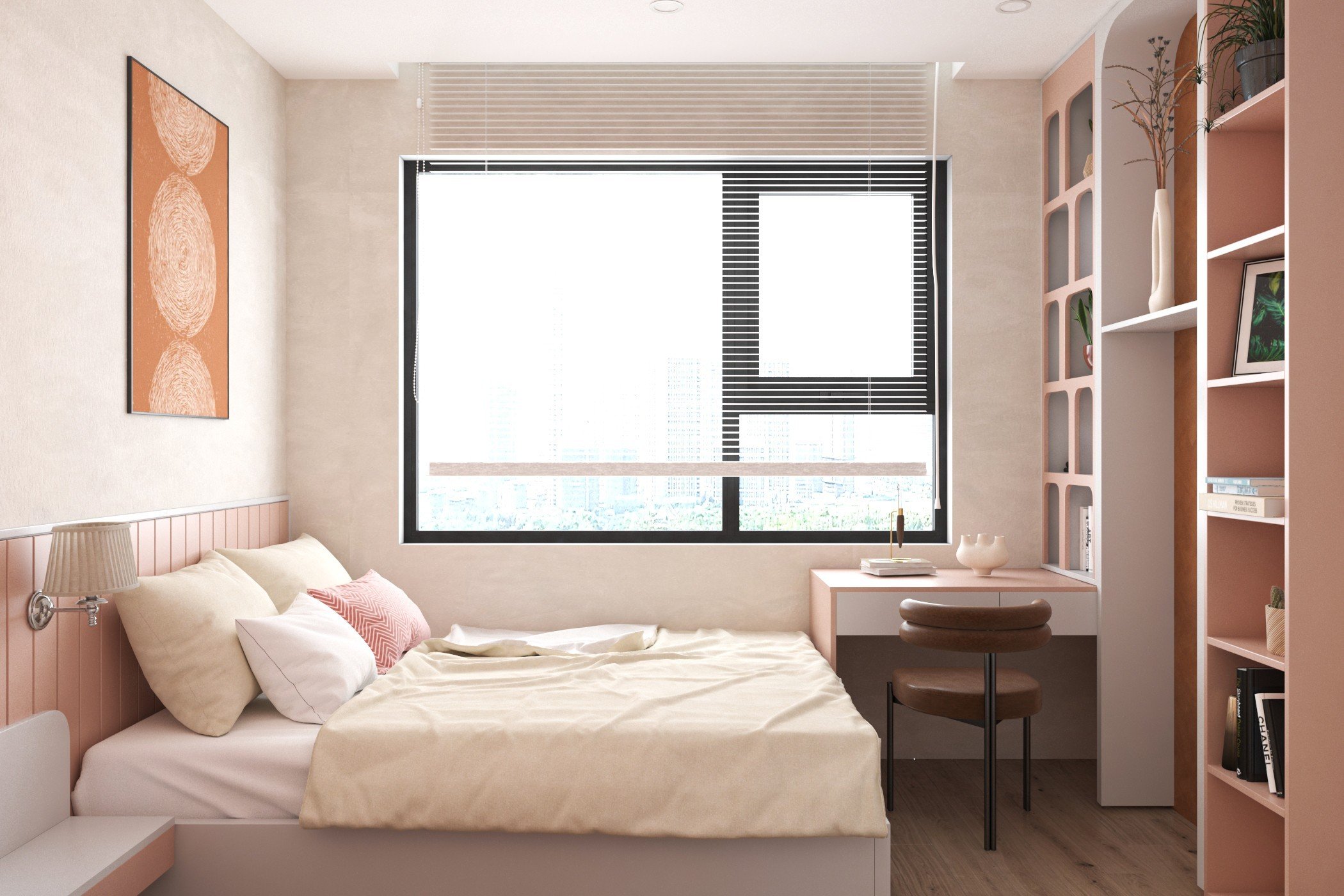 Hai phòng ngủ nhỏ được thiết kế trẻ trung, nội thất tối giản, gam màu trung tính pha màu đen cá tính như một cách thể hiện phong cách sống nhạy bén. Chắc hẳn không gian này không chỉ đem đến những trải nghiệm sống thú vị mà còn thoả mãn ước muốn thể hiện cá tính bản thân của mỗi thành viên