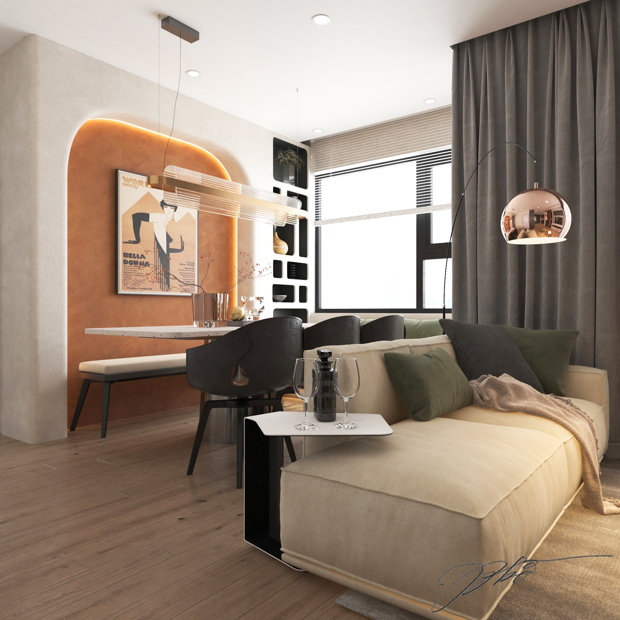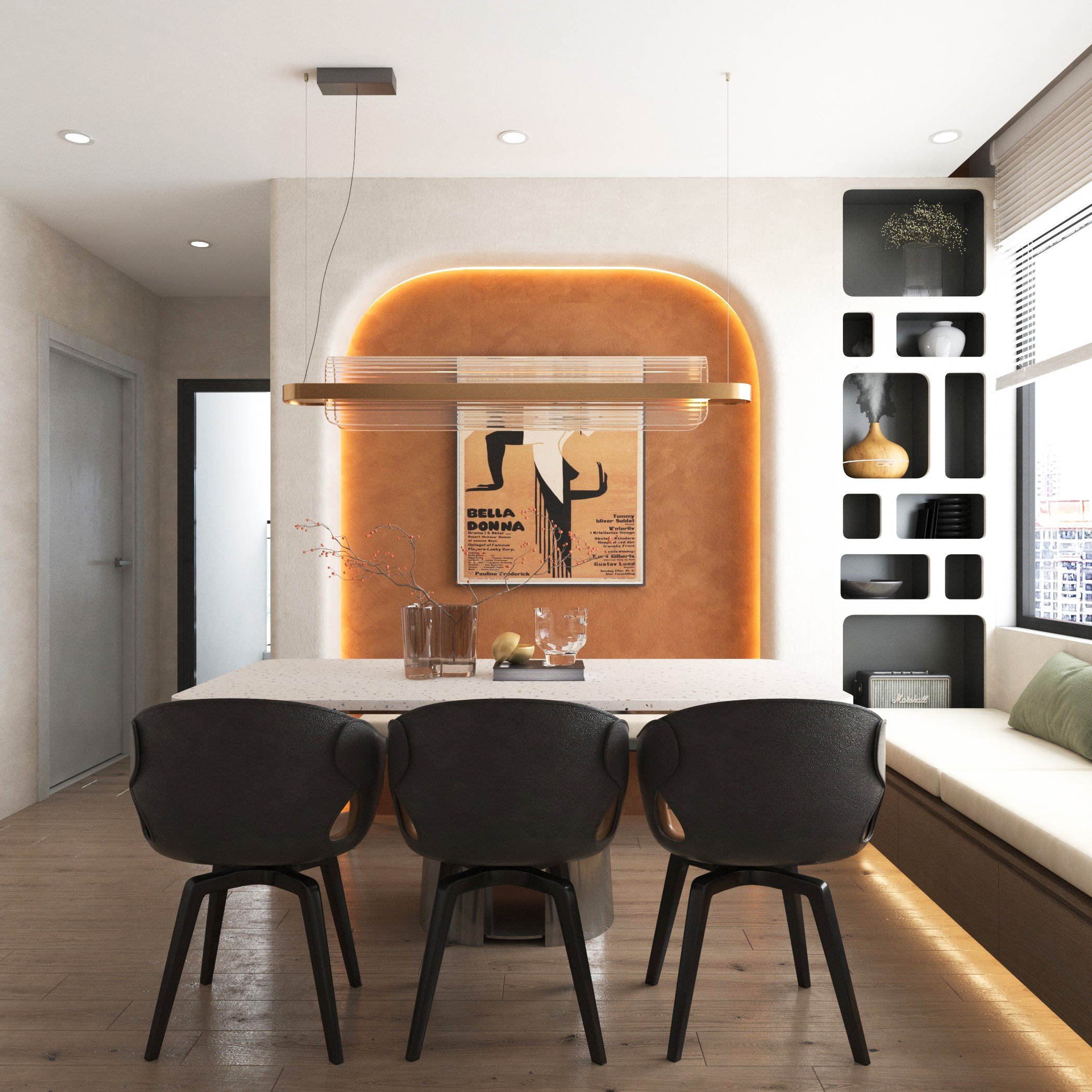 Khu vực bàn ăn sẽ đặt liền kề phòng khách, kết hợp với tủ rượu cao cấp, hướng gia chủ đến với một không gian ăn uống sang trọng và đầy ấm cúng. Trong khi đó, khu vực tủ bếp nấu ăn sẽ được đặt một góc riêng ngăn cách với không gian bên ngoài bằng hệ cửa kính. Điều này giúp tối ưu việc giữ gìn vệ sinh cho các khu vực mà vẫn không gây cảm giác bí bách, rời rạc
