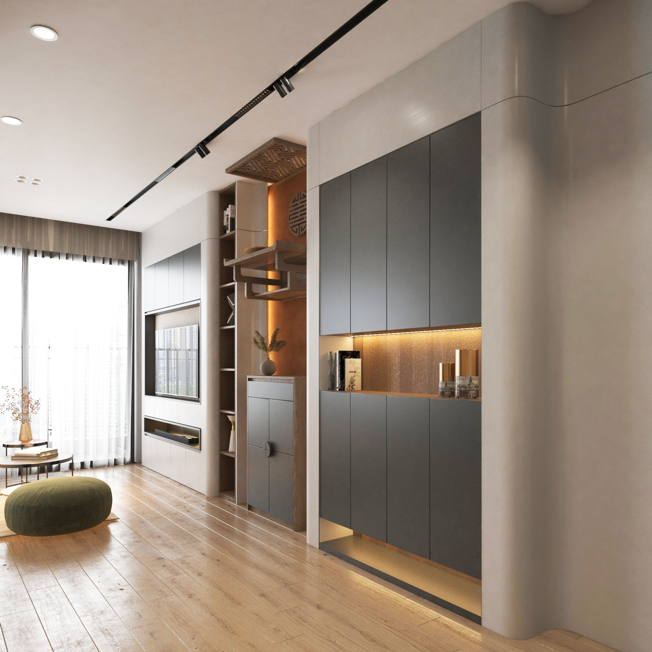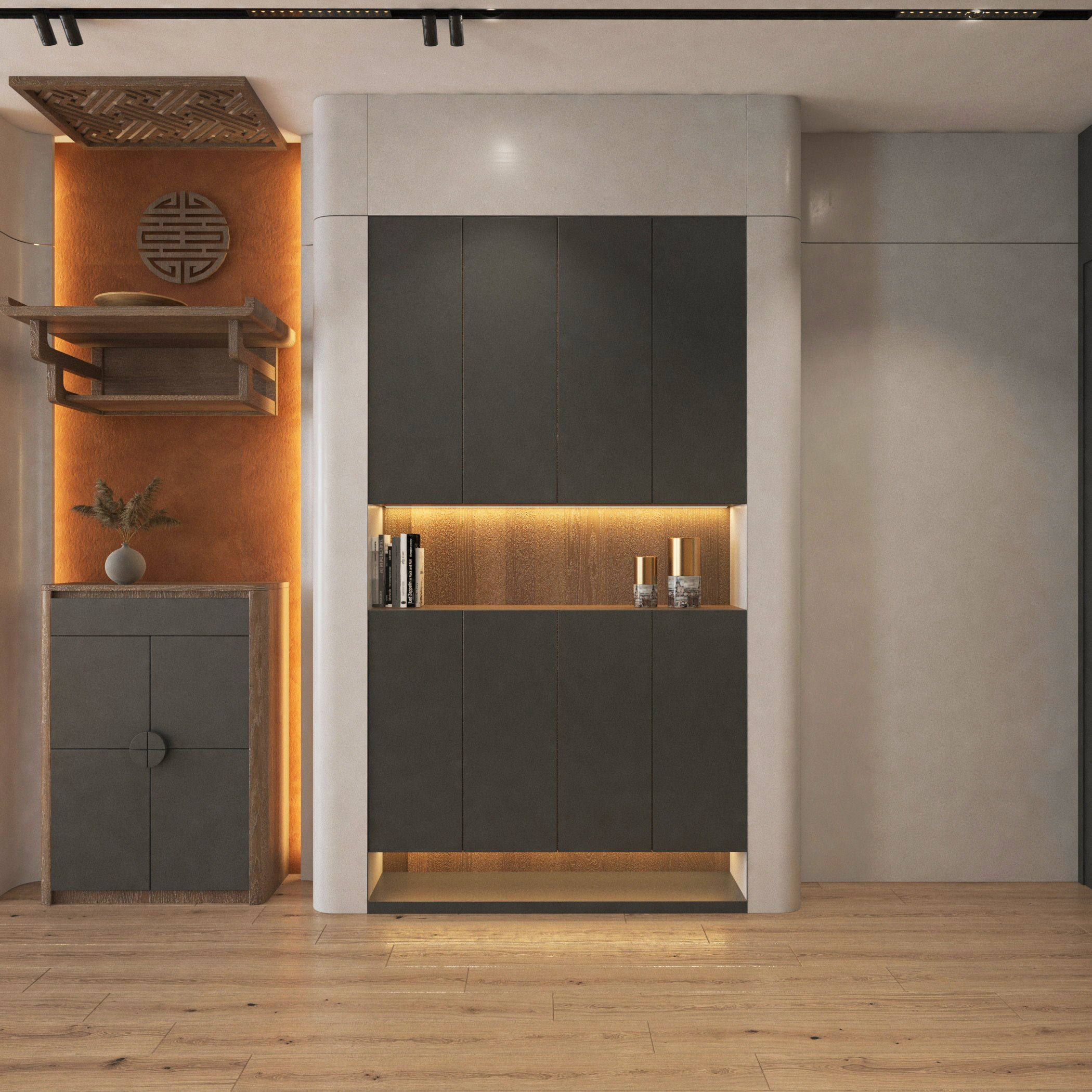Và phần thờ gia tiên cũng được kiến trúc sư thiết kế một cách gọn gàng tối ưu hóa diện tích nhất mức có thể, tất cả mọi thứ trong căn chung cư được sắp xếp hài hòa với không gian sống trong nhà