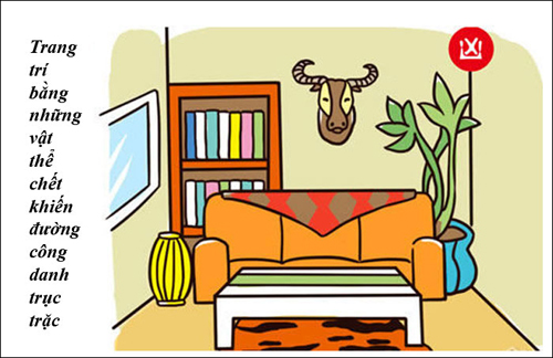 Có không ít người chọn sừng hươu, tê giác, da báo, thậm chí là tượng đầu trâu, đầu ngựa,… để trang trí khu vực phòng khách để thể hiện sự quyền uy, sang trọng. Nhưng thực tế, các loại sừng, đầu, da động vật (nếu là hàng thật) thì nghĩa là chúng được làm từ vật đã chết, tạo nên nguồn âm khí gây ảnh hưởng đến môi trường sống của bạn. Còn nếu chúng là vật phẩm giả thì những hình ảnh đó cũng gây nên cảm xúc tiêu cực, sợ hãi khi nhìn vào. Với hoa khô cũng vậy, nếu có điều kiện bạn nên mua hoa tươi để căn phòng bừng sáng, sinh động. Nếu chọn vật thể chết thì công danh, sự nghiệp của gia chủ cũng theo đó mà trục trặc.