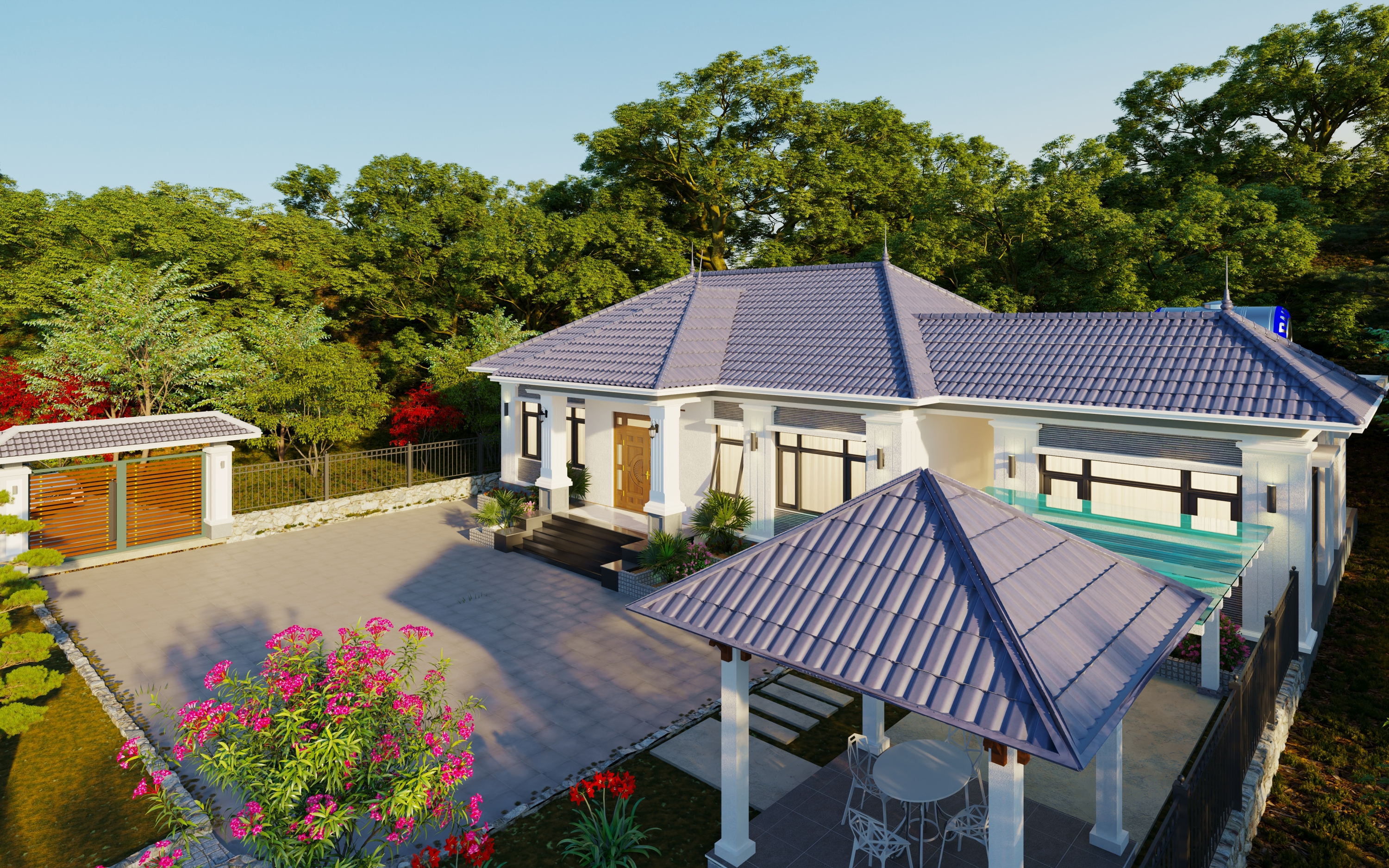 Các mẫu nhà vườn 1 tầng hay biệt thự vườn, biệt thự sân vườn gần gũi với thiên nhiên luôn được thiết kế xây dựng nhiều trong những năm gần đây. Những mẫu nhà này mang đến một không gian nghỉ ngơi yên bình, thư giãn. Không quá đồ sộ so với những biệt thự cao tầng hay những công trình lâu đài, nhà vườn cảm nhận được sự bình yên thư thái giống như nghỉ dưỡng.