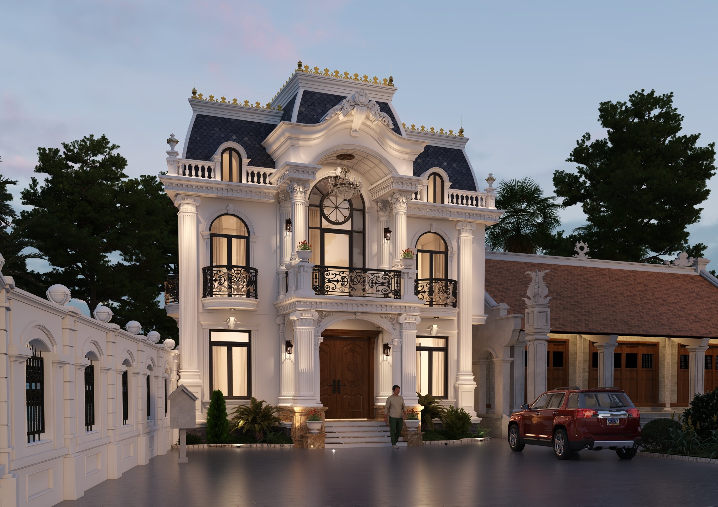 Mẫu nhà biệt thự tân cổ điển mặt tiền 9m là phương án thiết kế của Aroom dành cho gia đình nhà anh Đỉnh ở Sóc Sơn. Công trình biệt thự 2 tầng được thể hiện sự tinh tế, sang trọng và đẳng cấp của chủ đầu tư. Phong cách tân cổ điện với những họa tiết trang trí tinh xảo, vật liệu và màu sắc vô cùng cao cấp. Dưới đây là hình ảnh rõ nét của căn biệt thự tân cổ điển với mặt tiền 9m này: