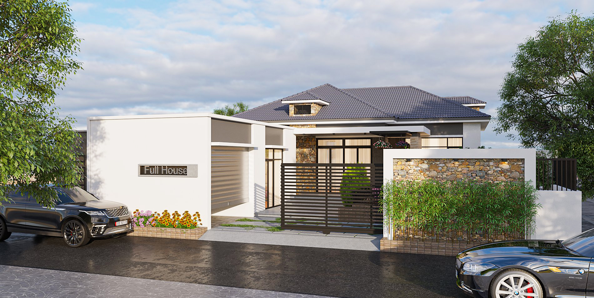 với sắc trắng tinh tế không chỉ giúp tạo nên sự bắt mắt mà còn giúp làm nổi bật các chi tiết trang trí hay màu sắc để tạo điểm nhấn nổi bật cho ngôi nhà. Phần mái của ngôi nhà được thiết kế với tông màu ghi vừa giúp tô điểm thêm nét hiện đại cho ngôi nhà, vừa giải quyết được vấn đề chống nóng và thoát nước được nhanh chóng hơn vào những ngày trời mưa.