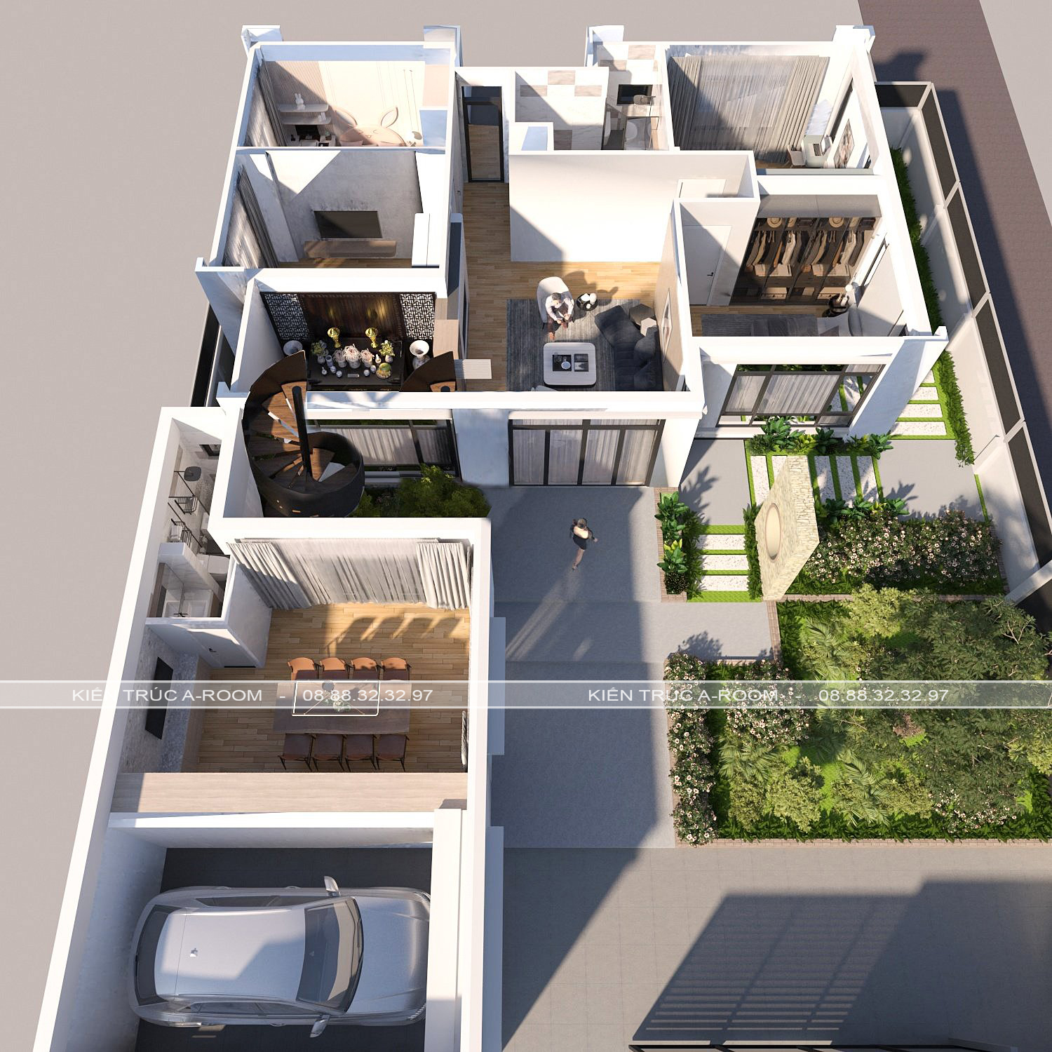 Hệ thống cửa nhôm kính hộp hai lớp giúp gia chủ không cần phải lo lắng về tiếng ồn, đồng thời còn có thể lấy được ánh sáng tự nhiên tốt hơn giúp căn phòng thông thoáng, rộng rãi. Các công năng ở bên trong ngôi nhà cũng được kiến trúc sư thiết kế và bố trí một cách hợp lý giúp mang đến không gian thoáng mát, rộng rãi vừa đủ để tạo ra sự thoải mái cho gia chủ.